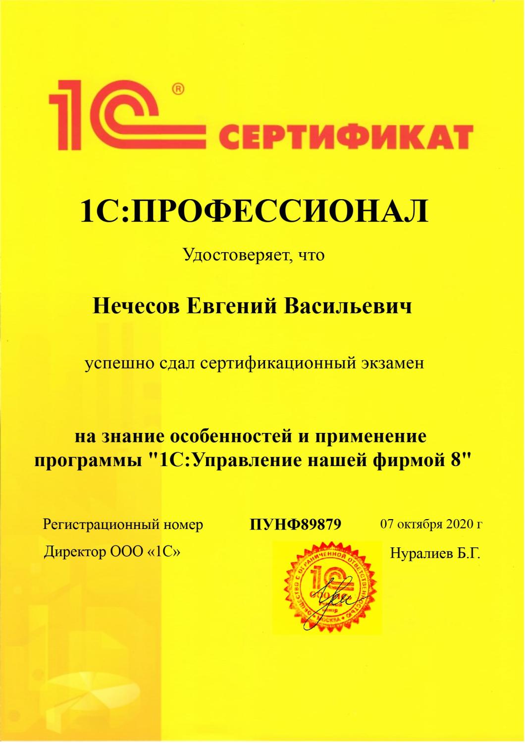 1С:Профессионал по конфигурации 1С:Управление нашей фирмой