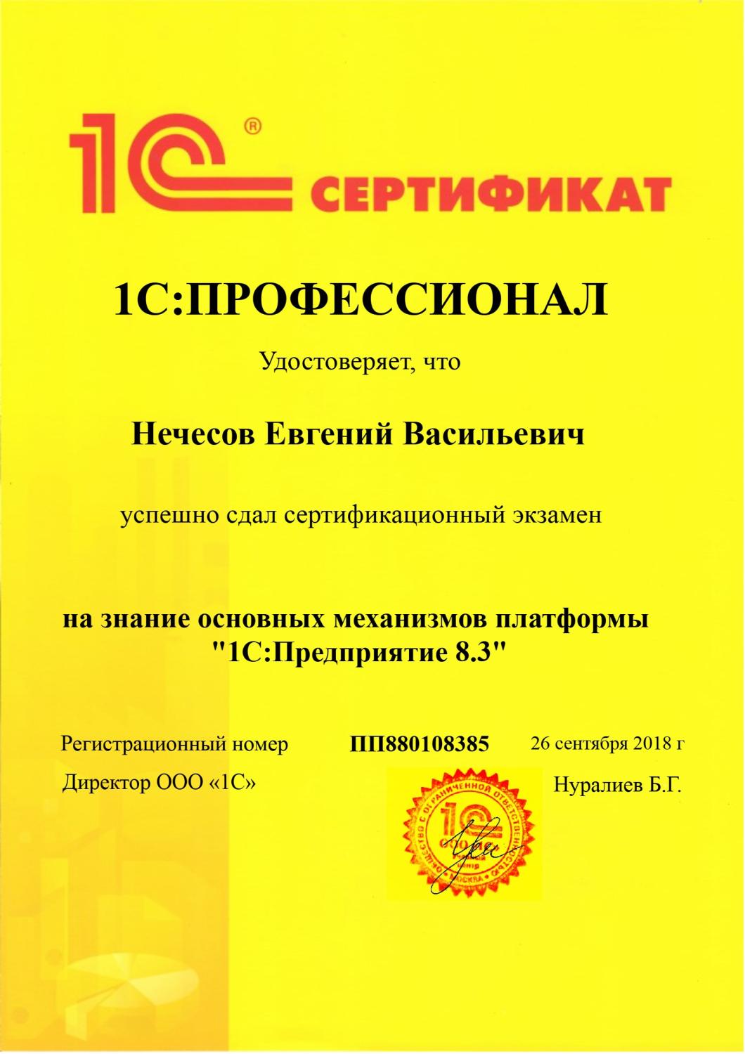 1С:Профессионал по технологической платформе 1С 8.3